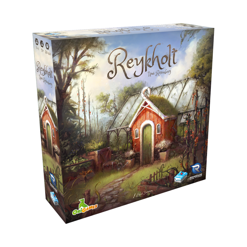 On commence avec une précommande pour le jeu Reykholt à l’occasion du salon Essen 2018. Il s’agit de la localisation française du jeu de Uwe Rosenberg Illustré par Lukas Siegmon, sous la marque Renegade France.