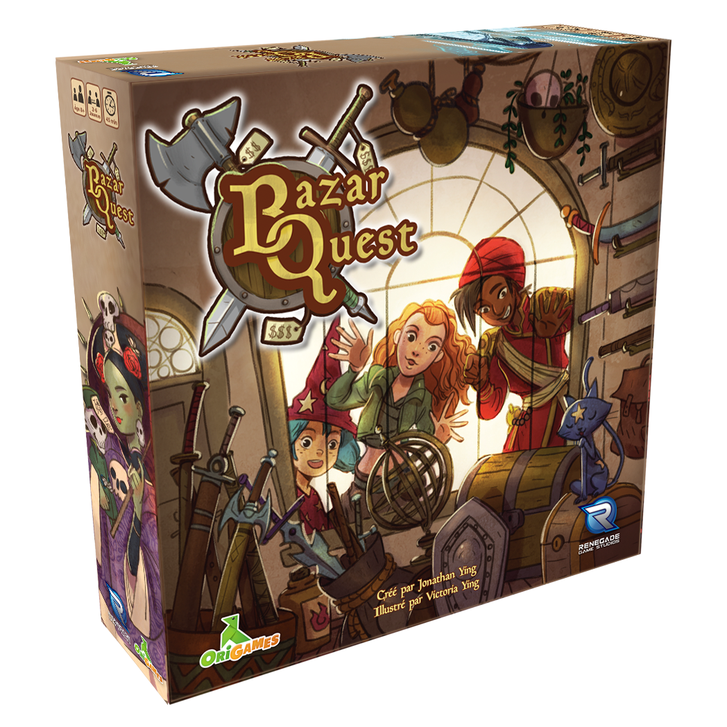 Bazar Quest est un jeu de draft et d’opportunisme pour 2 à 6 joueurs. Choisissez bien quels trésors (ou babioles) exposer dans votre vitrine, pour attirer les héros dans votre échoppe. Vendez-leur votre meilleur (ou pire !) équipement et envoyez-les au combat. En cas de succès, à vous la gloire ! Mais s’ils se font manger tout cru… tant mieux, pas de SAV ! Attention quand même à ne pas perdre l’ensemble des héros avant qu’ils n’aient chassé les trois monstres, sinon c’est la faillite pour tous les joueurs…