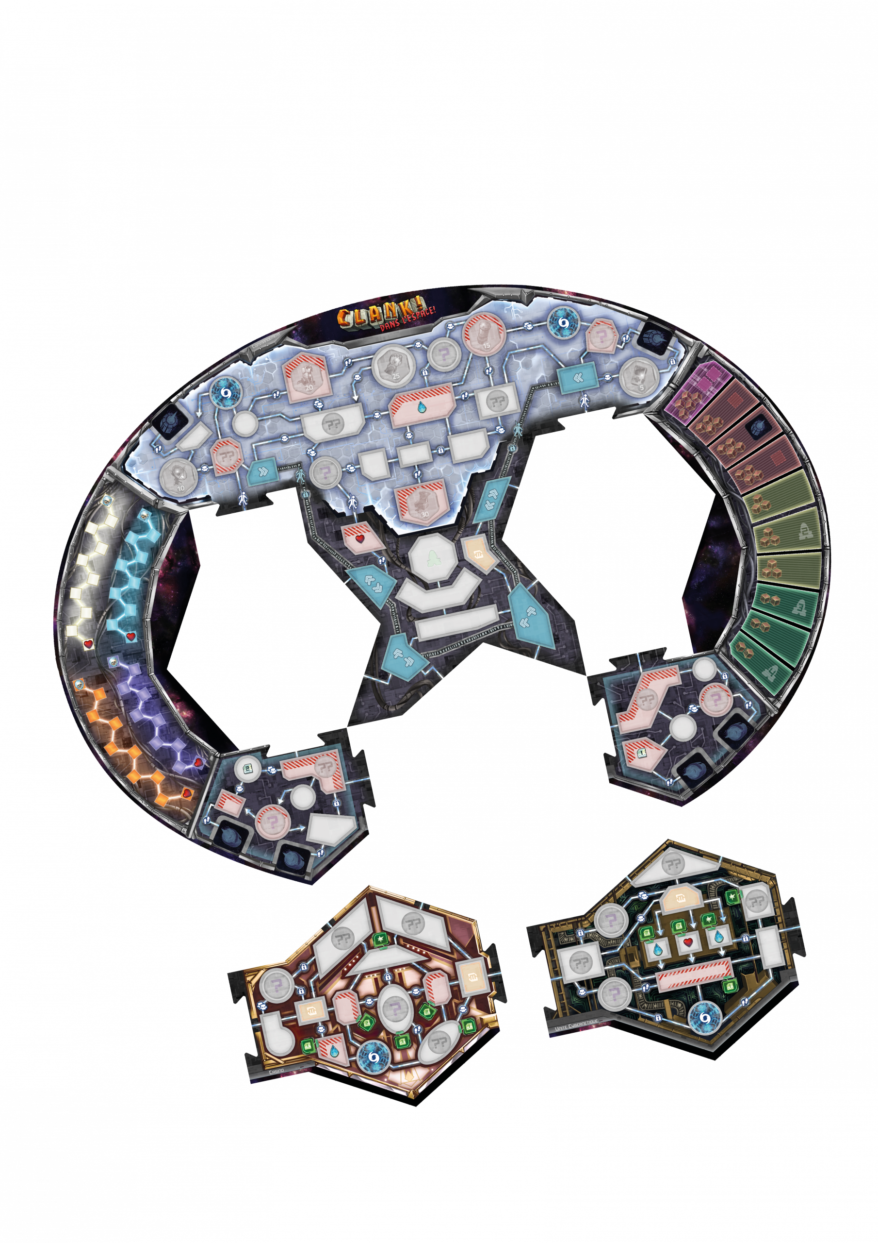 Dans cette 2ème extension pour Clank! Dans l’Espace!, vous naviguez sur un nouveau plateau ovoïde, désormais à la recherche d’Appareils cybernétiques. Ces cartes inédites s’installent (en échange d’un Cristal de pouvoir) et deviennent permanentes pour vous apporter des bonus supplémentaires à chaque tour. Deux nouvelles Capsules de sauvetage sont ajoutées pour vous échapper, mais attention à ne pas tourner en rond dans la station…