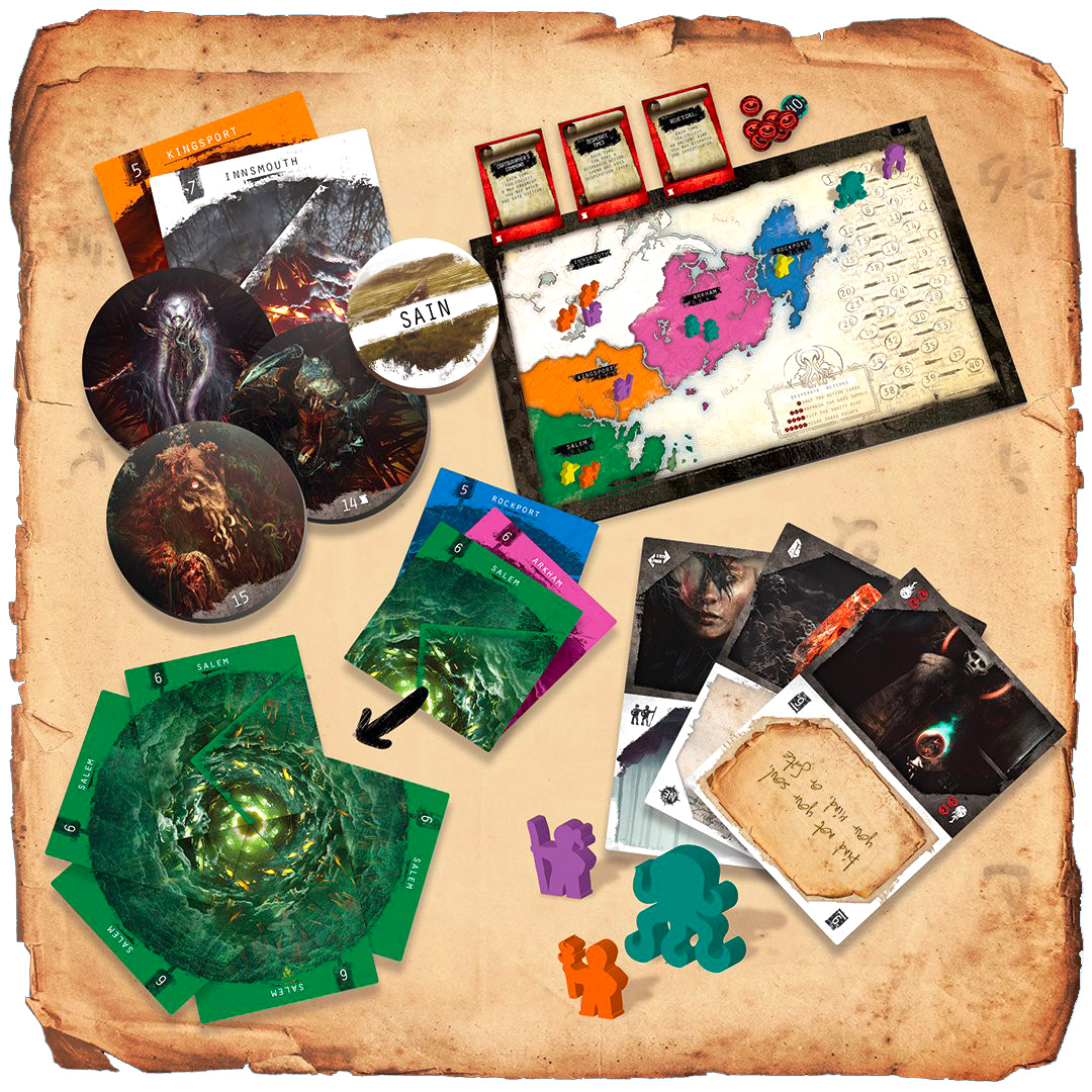 Choisissez quel sera le statut du tour : sain ou malsain. Les joueurs doivent alors jouer leur cartes selon votre choix. Envoyez vos investigateurs de Salem à Arkham. Ouvrez des portails et libérez des monstruosités. Soyez majoritaire dans les régions où les portails s’ouvrent pour marquer un maximum de points. Faites des actions désespérées pour augmenter vos effets. Plus vous collectionnez de fragments de plans, de runes et de parchemins, plus vous scorez de points. Allez-y, vous n’en reviendrez pas…
